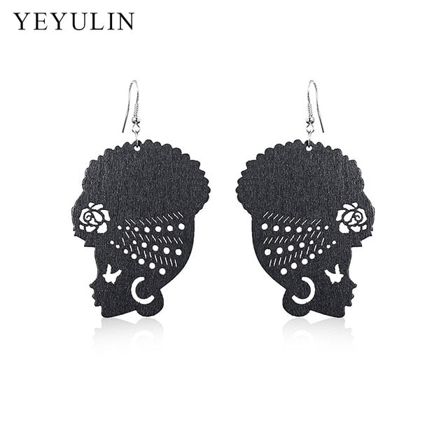 Wooden Ethnic style African Female Head Wrap Turban Shaped Earrings